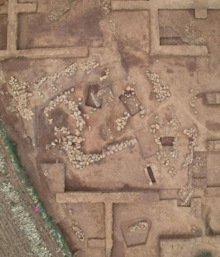 据了解,该遗址分为积石冢墓葬区和祭祀区,分为上、下两层文化堆积。其中,下层文化堆积的东南部为长方形积石冢墓葬区,西北部疑似祭祀区;在上层文化堆积中,积石冢面积有所扩大,结构由长方形变为圆形,冢的东南部为祭祀区。